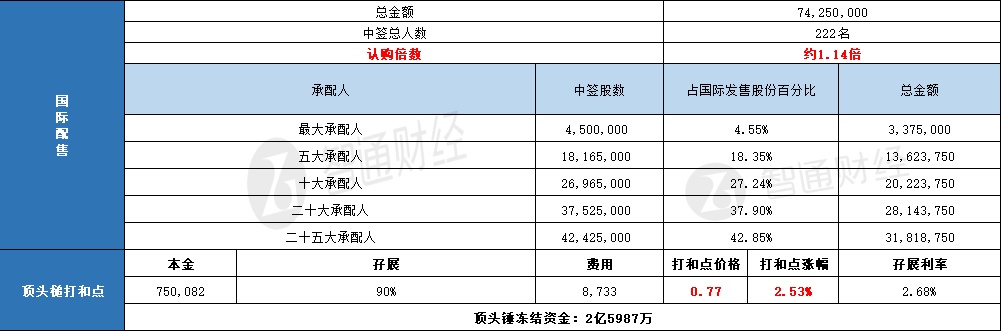 国际配售申购人数未披露,认购倍数约1.14倍。
