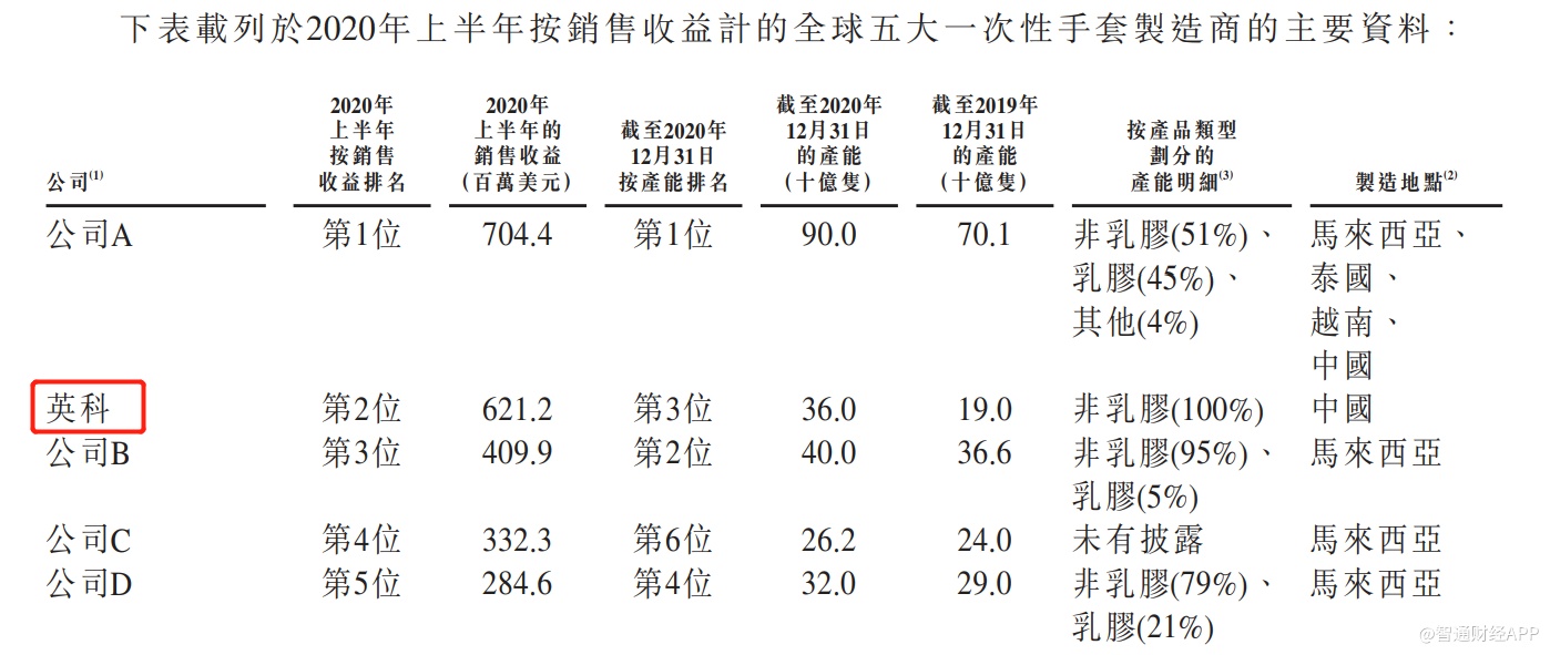 由于产销两旺以及供需结构失衡下,一次性防护手套的价格在一段时间内的明显提升,英科医疗在2020年录得收入138.37亿元,同比增长564.29%。据已递交港交所的招股书显示,即使以2020年上半年的销售收益计算,英科医疗已是中国最大及全球第二大的一次性手套供应商,且与全球第一的玩家相差并不大。
