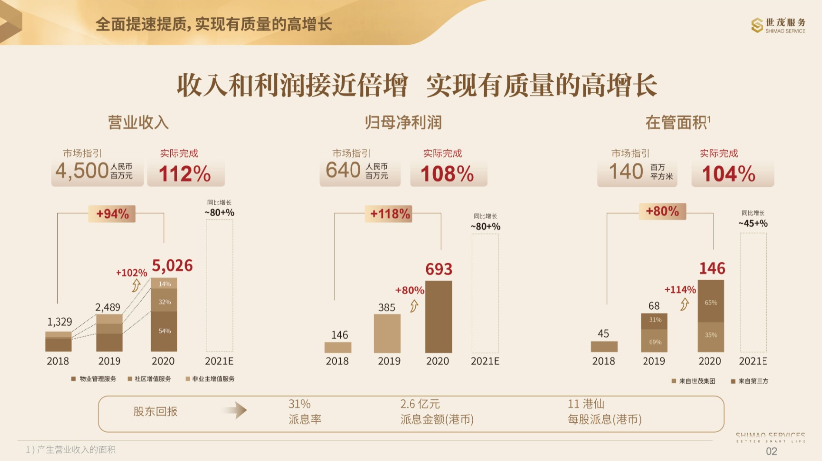 综上,2020年,世茂服务通过在物业管理服务、社区增值服务、非业主增值服务三大业务板块协同发展实现扎实深耕,为公司实现业务增长多点开花提供动力。2021年,公司更是制定了新的三年规划。
