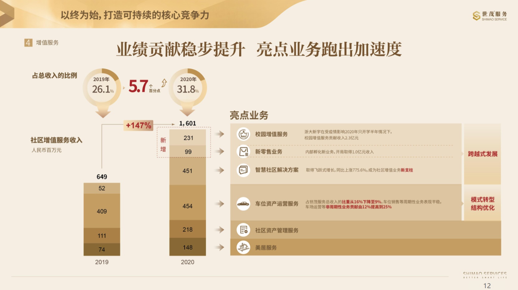 纵观财报,社区增值服务收入的显著增长,也是世茂服务2020年值得关注的一大亮点之一。
