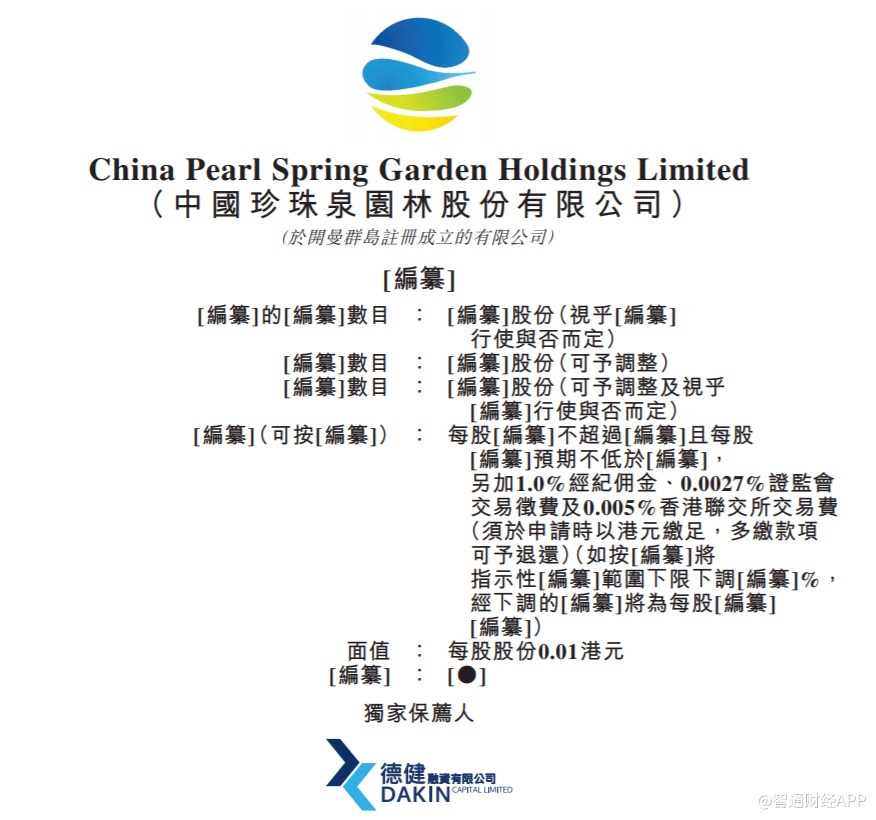 智通财经APP获悉,3月16号,中国珍珠泉园林股份有限公司向港交所主板递交上市申请,德健融资有限公司为独家保荐人。值得注意的是,该公司曾于去年6月29日向港交所主板递交过上市申请。