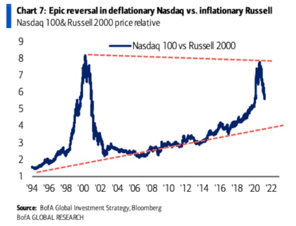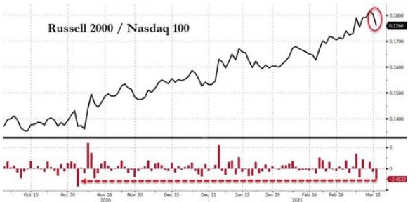 该策略师指出,其团队曾于去年4月,在疫情导致股市出现低点时,将小盘股的评级进行了上调,并称其上调的核心观点为:“市场将经历经济的V型复苏,而政府对失业周期的补贴将增加到企业的利润,尤其是小盘股。”随后,罗素2000指数的表现不断走强,至今已分别超过标普500指数和纳斯达克100指数50%和40%。