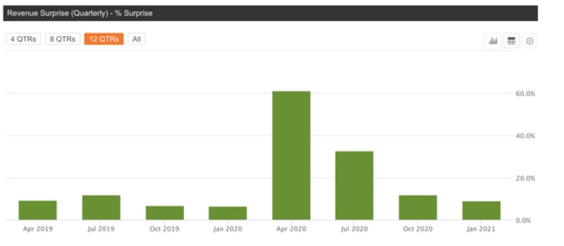 财报显示,公司2021财年Q4营收8.82亿美元,同比增长368.78%,市场预期8.11亿美元。