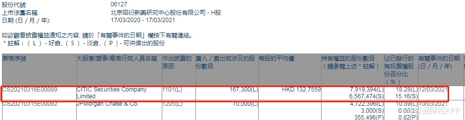 智通财经APP获悉,香港联交所最新资料显示,3月12日,中信证券增持昭衍新药(06127)16.73万股,每股作价132.7559港元,总金额约为2221.01万港元。增持后最新持股数目约为791.94万股,最新持股比例为18.28%。