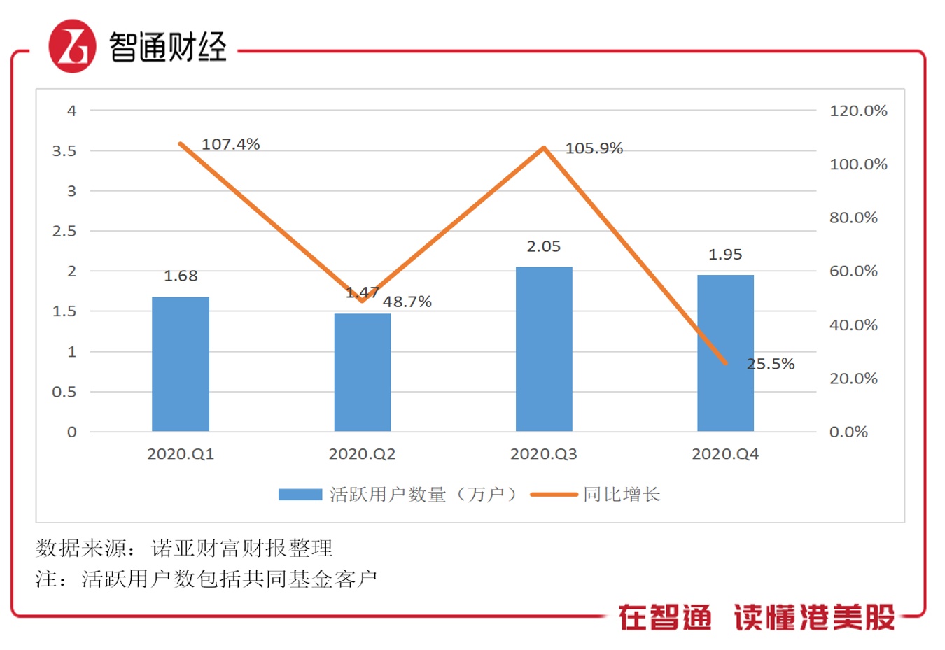 得益于标准化产品转型,以及强大的品牌带动,该公司的客户量大幅度增长。截止2020年12月,注册用户数量36.06万户,同比增长22.8%,近三年复合增长率达到17.7%。下半年,财富行业热度上升,用户理财意识增强,该公司平台活跃用户(包括共同基金)也显著提升,Q4为1.95万户,同比增长25.5%。