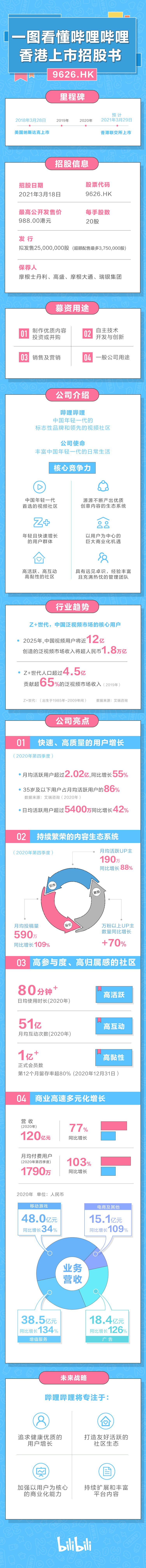智通财经APP获悉,3月17日,哔哩哔哩(BILI.US)公布了其全球发售的股份在香港联合交易所有限公司主板上市的计划(股份代号:9626)。该计划为全球发售和上市25,000,000股公司 Z类普通股(发售股份或股份)的一部分。香港公开发售的发行价将不超过每股988.00港元,每手20股。公司拟将全球发售募集资金净额用于优质内容投入、自主技术的开发与创新、销售及营销,以及一般公司用途及运营资金需要,从而支持社区健康、高质量的增长。