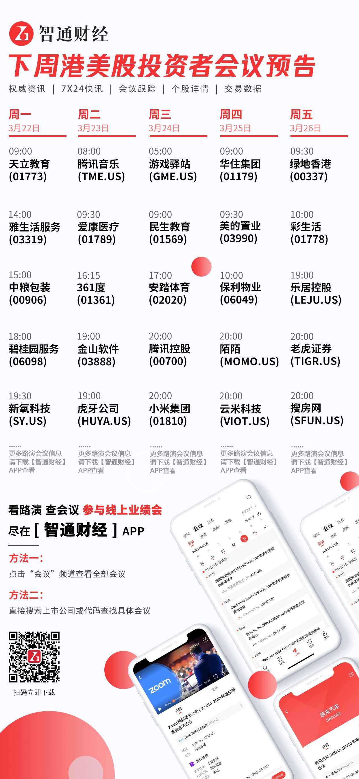 为您整理的下周(3月22日-3月26日)港美股上市公司会议日历。