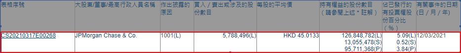 智通财经APP获悉,香港联交所最新资料显示,3月12日,JP Morgan Chase&Co.增持李宁(02331)578.84万股,每股作价45.0133港元,总金额约为2.606亿港元。增持后最新持股数目约为1.26亿股,最新持股比例为5.09%。