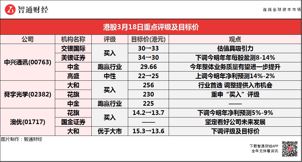 交银国际上调中兴通讯(00763)目标价10%至33港元,评级重申“买入”,将今明年每股盈测升16%-4%,认为估值具吸引力;