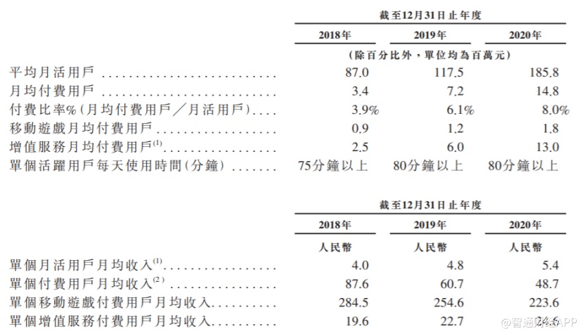在用户价值方面,连续三年平台单个月活用户月均收入连续增长,单个增值服务付费用户月均收入从2018年的19.6元增至2020年的24.6元。