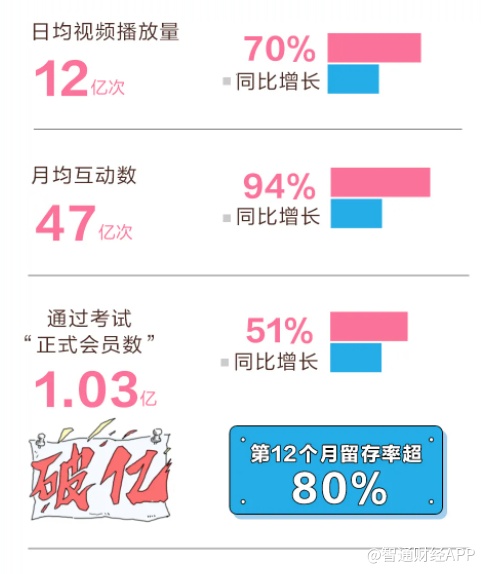 2020年第四季度财报显示,本季度,通过考试的“正式会员数”已到达1.03亿,同比增长51%,其第12个月留存仍然保持着超过80%的比例。