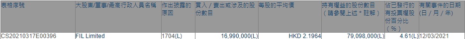 智通财经APP获悉,香港联交所最新资料显示,3月12日,FIL Limited减持华电国际电力股份(01071)1699万股,每股作价2.1964港元,总金额约为3731.68万港元。减持后最新持股数目约为7909.80万股,最新持股比例为4.61%。