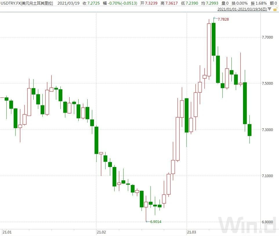 3月18日晚间,土耳其央行也宣布加息。土耳其央行将关键利率上调200个基点至19%,该央行还表示,如有必要,将进一步收紧货币政策。