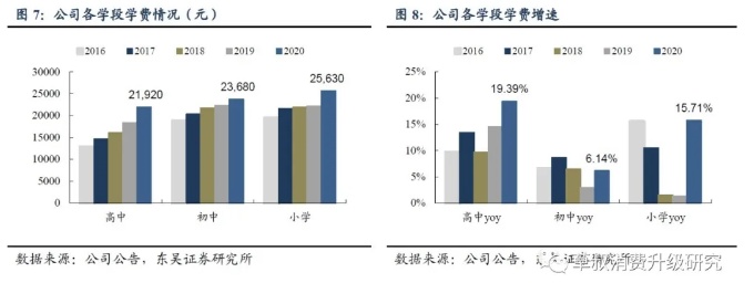 K12各学段平均学费大幅提升,市场竞争力强劲:2020年公司小学/初中/高中平均学费分别为2.2万/2.4万/2.6万元,同比增速分别为19.4%/6.1%/15.7%,2020年公司上调了苍溪天立,德阳天立,遵义天立和周口天立K12学段的学费以及天立国际学校小初学段的学费。公司在疫情下仍保持平均学费的高增长,从侧面也验证了公司旗下学校具备较强的市场竞争力。