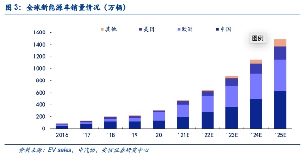 1)传统车企电动化转型态度坚决,电动化势不可挡。大众此次提出,将在2025年推出旗下品牌中15款基于MEB平台的车型并实现本土化生产,预计大众电动车的产量将占集团在华车型的35%,达到年交付总量150万辆,大众还计划在2030年,大众纯电动车在中国的保有量需达到1200万辆。从长期来看,电动化+数字化趋势明确,各大车企纷纷加码布局,群雄逐鹿局面正加速形成,在电动化与数字化背景下集中度将大幅提升,倒逼车企不断突破发展,目前在政策+产品双擎驱动,电动化已进入快速发展阶段,展望2025,预计全球新能源车销量近1500万辆,CAGR将达37%。