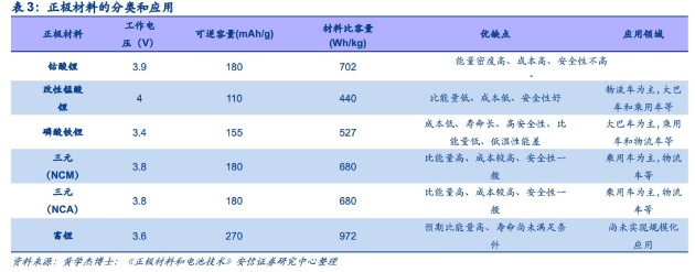 从技术路线来看,目前电动汽车用正极材料主要是三元和磷酸铁锂。三元正极材料对应的锂电池在同等条件下具有能量密度高,续航能力强的特点;而磷酸铁锂电池具有安全性好,成本低的特点,两者被广泛应用在电动汽车领域。其中,三元材料又可以分为NCM(镍钴锰)和NCA(镍钴铝)两种。