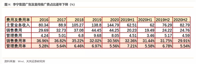 渠道策略:李宁主品牌方面是继续扩充高效大店,虽然门店数呈现高单位数下降,但总体营业面积呈现高单位数上升。