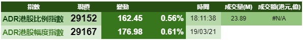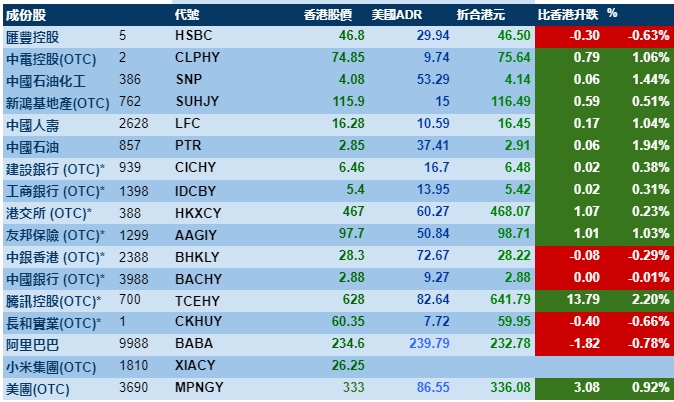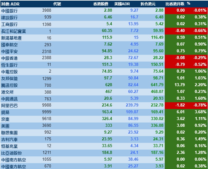 智通财经APP获悉,周五美股三大指数涨跌不一,港股ADR指数小幅上涨,按比例计算,收报29152点,涨162.45点或0.56%。