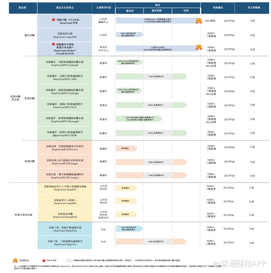 公司核心产品包括:深脉分数和,深脉脑卒中智能影像分析系统。深脉分数是一种采用深度学习技术的软件医疗设备,其可进行冠状动脉无创生理功能评估,并根据冠状动脉电子计算机断层扫描血管造影(CTA)图像计算血流储备分数(FFR)。深脉脑卒中智能影像分析系统是一款使用深度学习技术检测,及诊断脑卒中的软件医疗器械。