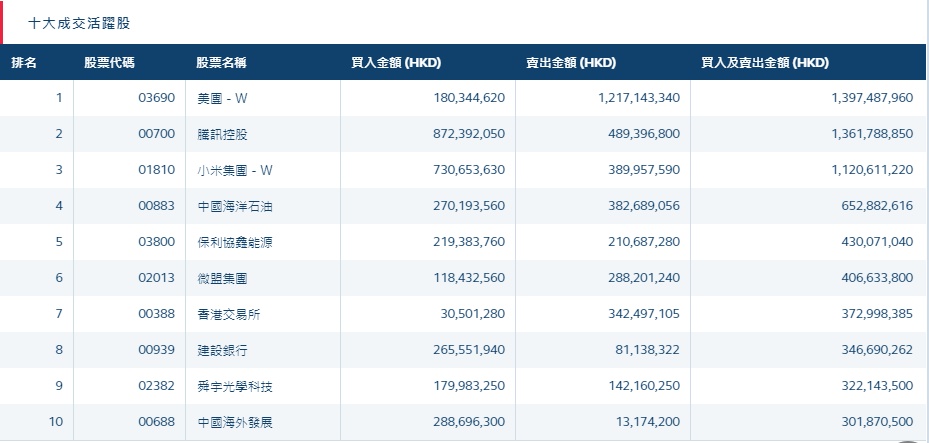 此外,中国海外发展(00688)、保利协鑫能源(03800)分别获净买入2.75亿、869万港元。而港交所(00388)、中芯国际(00981)、舜宇光学(02382)分别遭净卖出4.75亿、5159万、792万港元。