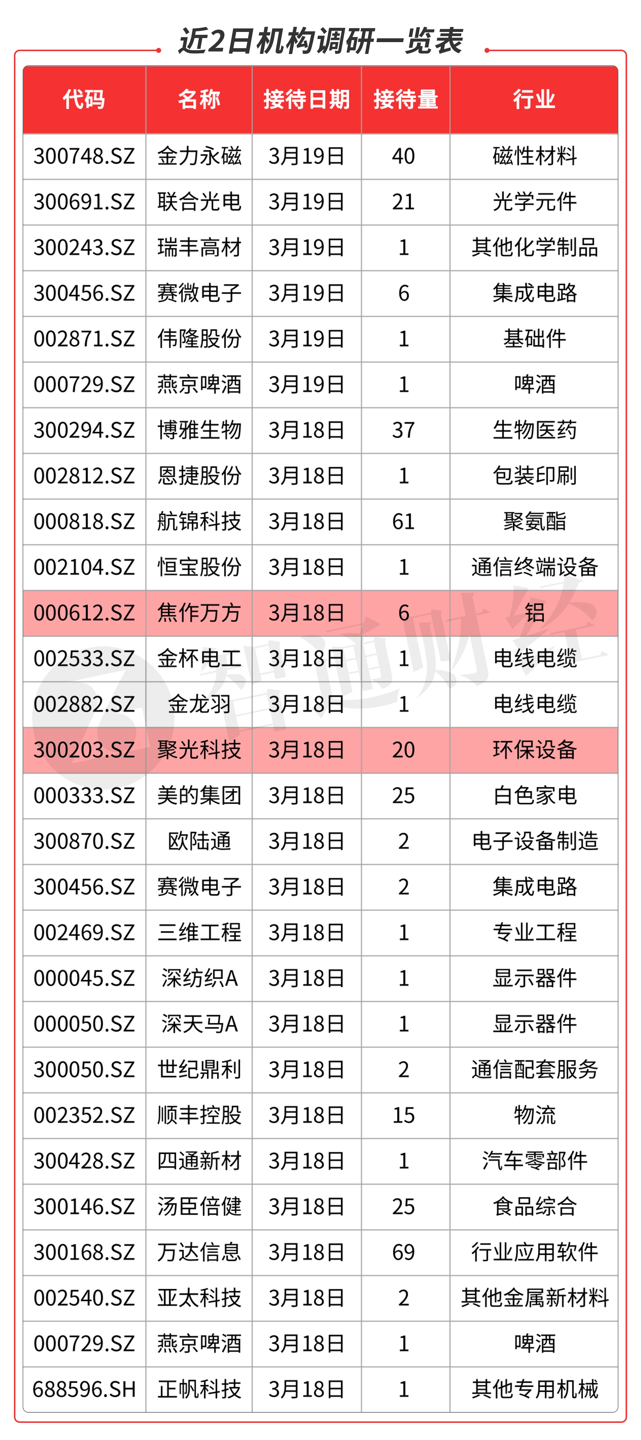 【导读】焦作万方(000612.SZ)和聚光科技(300203.SZ)近期获多家机构调研。焦作万方(000612.SZ)为铝电一体化企业,主营业务为铝冶炼及加工、铝制品、金属材料销售,主要产品电解铝液、铝锭及铝合金制品。公司在生产经营中有两个比较重要涉及“碳达峰、碳中和”的环节,目前,公司加大环保投入,持续关注与碳中和、碳达峰相关的政策对行业的影响。聚光科技(300203.SZ)以环境监测仪器起家,旗下多技术产品适用于多细分领域,目前产品线已形成环境、工业、实验室、水利水务与生态综合发展5大板块,同时加深渗透生命科学、诊断、半导体等新领域发展。公司未来将半导体行业作为重点发展的细分市场,开发产品打破国外封锁,助力半导体产业国产化。