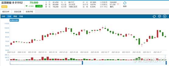 或受业绩亏损大幅增加的原因,云顶新耀绩后股价表现不佳,截至收盘时间,公司股价下跌3.54%,报收79.00港元/股。