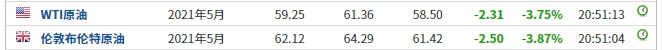 截至发稿,WTI原油跌3.75%,报59.25美元/桶。布伦特原油跌3.87%,报62.12美元/桶。