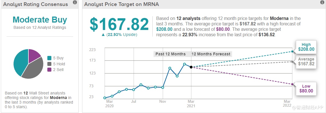 此前,Chardan Capital分析师Geulah Livshits将Moderna目标价从107美元上调至182美元,并重申“买入”评级。Livshits表示:“我们更新了对Moderna的看法,反映了Moderna 新冠疫苗商业框架的更好可见度,以及该公司在更广泛的渠道发展背景下应对各种担忧的策略。”