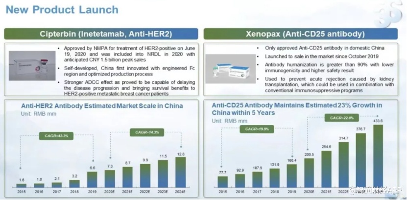 健尼哌则是三生国健自主研发的另一款新药,也是国内唯一获批上市的人源化抗CD25单克隆抗体注射液,用于预防肾移植引起的急性排斥反应,可与常规免疫抑制方案联用。据预计,未来五年CD25单抗在中国将保持23%的增长。