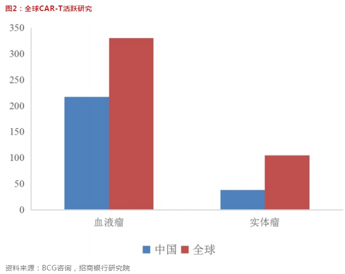 以CAR-T疗法为例,自2017年,FDA已经批准了4个以CD19为靶点的CAR-T疗法。其中,2020年Kymriah和Yescarta的全球销售额分别达到4.74亿美元和5.63亿美元,2018-2020年复合增长率分别达到84.1%和28.7%。而得益于国内“双规制”体系,即让顶尖医院开展研究者独立发起的临床试验,并以技术形式出售CAR-T治疗,国内CAR-T疗法进行的如火如荼,占全球研究的40%左右,临床试验数量也在逐年快速增长。