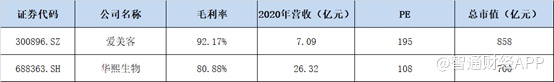 除了稀缺以外,公司当前总市值仅仅10.74亿美元,折合人民币不到70亿元。而在医美产业链中,上游企业的营收规模并不太大,这些企业的估值却非常高,如爱美客2020年营收仅7.09亿元,但估值依旧高达858亿元。