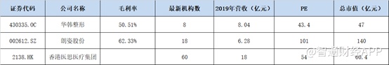 下游医美机构中,连锁店数不多,毛利率远不如上游企业及新氧,但估值普遍也不低。