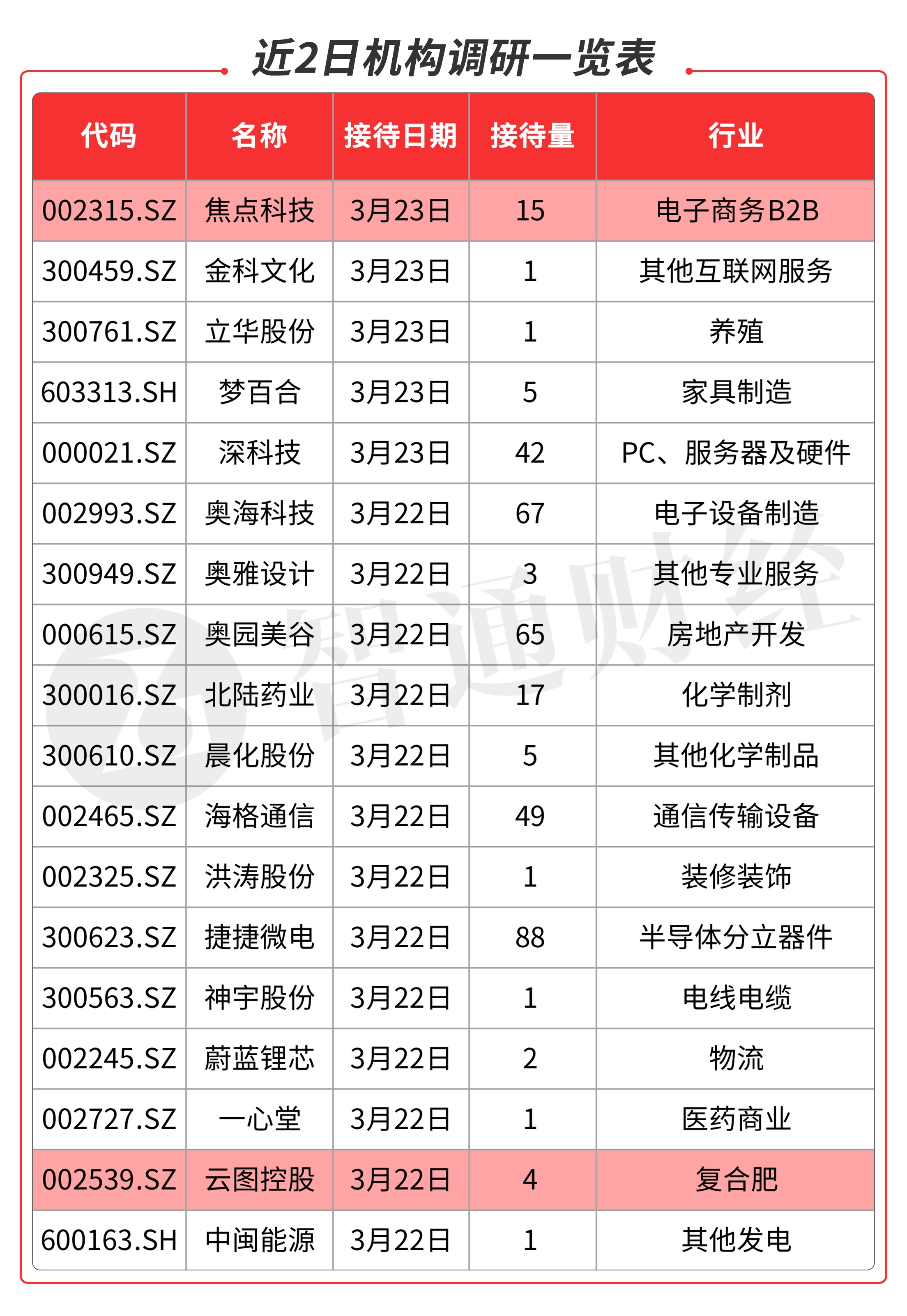 焦点科技(002315.SZ):近期获汇添富基金、新华基金、华富基金、交银施罗德基金等机构密集调研。