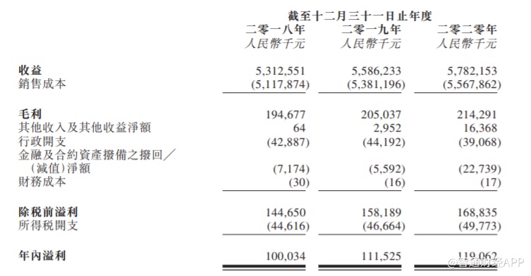 截至2020年12月31日止三个年度,公司的收益总额分别为约人民币53.126亿元、人民币55.862亿元及人民币57.822亿元。于截至2020年12月31日止三个年度,年内溢利分别约为人民币1.00亿元、人民币1.115亿元及人民币1.191亿元。