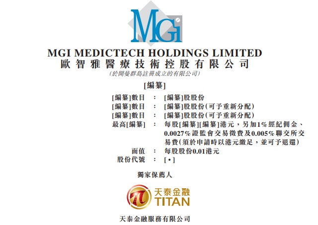 智通财经APP获悉,据港交所3月24日披露,欧智雅医疗技术控股有限公司(MGI MEDICTECH HOLDINGS LIMITED)向港交所创业板提交上市申请,天泰金融为独家保荐人。该公司曾于2020年7月17日递表港交所创业板后失效。