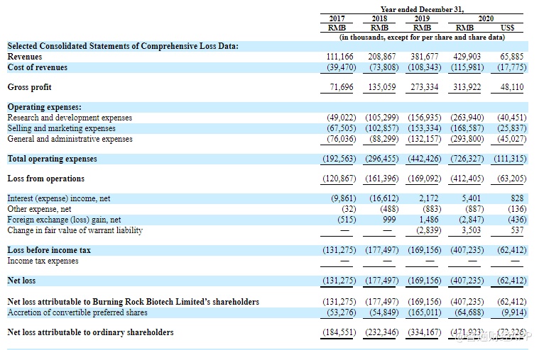 2020年燃石医学研发支出为2.64亿元,同比增长68.2%。净亏损为4.07亿元,上年同期录得净亏损1.69亿元。摊薄后每股亏损6.88元。
