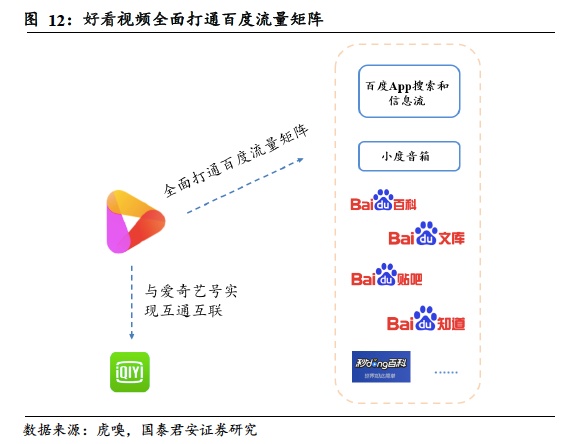 好看视频全面打通百度流量矩阵,与爱奇艺号实现互通互联。2020年5月,好看视频已经全面打通了百度的流量矩阵,好看视频发布的内容将同步分发至百度App搜索和信息流、小度音箱、百度贴吧、百度知道、百度文库、秒懂百科及百度百科等百度系产品。同时,好看视频也将与爱奇艺号实现互通互联。据好看视频发布的《2020好看视频创作者图鉴》显示,截至2020年9月,好看视频平台创作者数量突破百万,依托百度移动的生态流量,已实现全域覆盖用户超8亿,独立App日活超3000万,在平台100+垂类领域的创作者中,持续输出泛知识类内容的创作者占比高达79%。