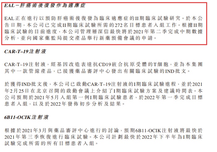 永泰生物动作的确很快。毕竟,在去年IPO时以及年底的所有对外路演上,公司管理层关于EAL®的最终数据分析时间均是2021年下半年。可没想到,惊喜似乎来得太快。3月25日,永泰生物公告称,EAL®肝癌适应症已经完全入组,最早在2021年二季度就有望进行中期数据分析,并进入药品上市研讨阶段。