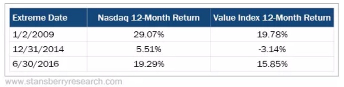 贝瑞研究高级分析师Steve Sjuggerud投研团队分析认为:10多年来量化数据显示,基金经理大幅价值股更能跑赢成长股的现象,反指来了。