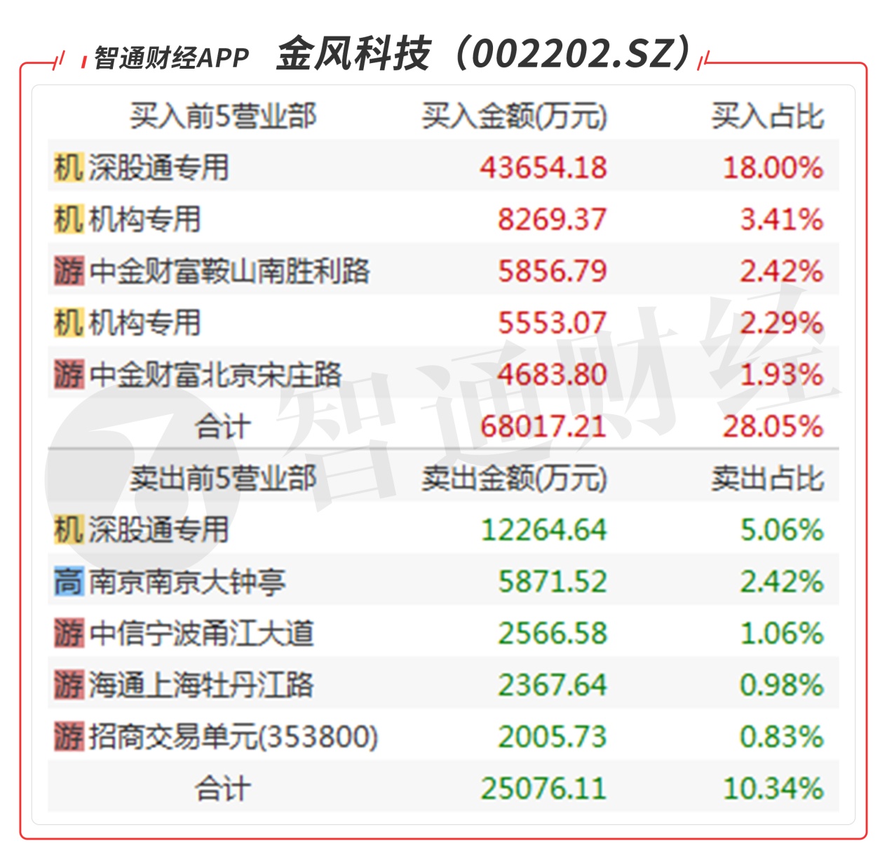 金风科技(002202.SZ)多主力现身龙虎榜,深股通对倒净买入3.14亿元,两家机构共买入1.38亿元,当日净买入4.85亿元,今天放量明显,显示机构高度追捧,目前60日均线有压力,看能否顺利突破。