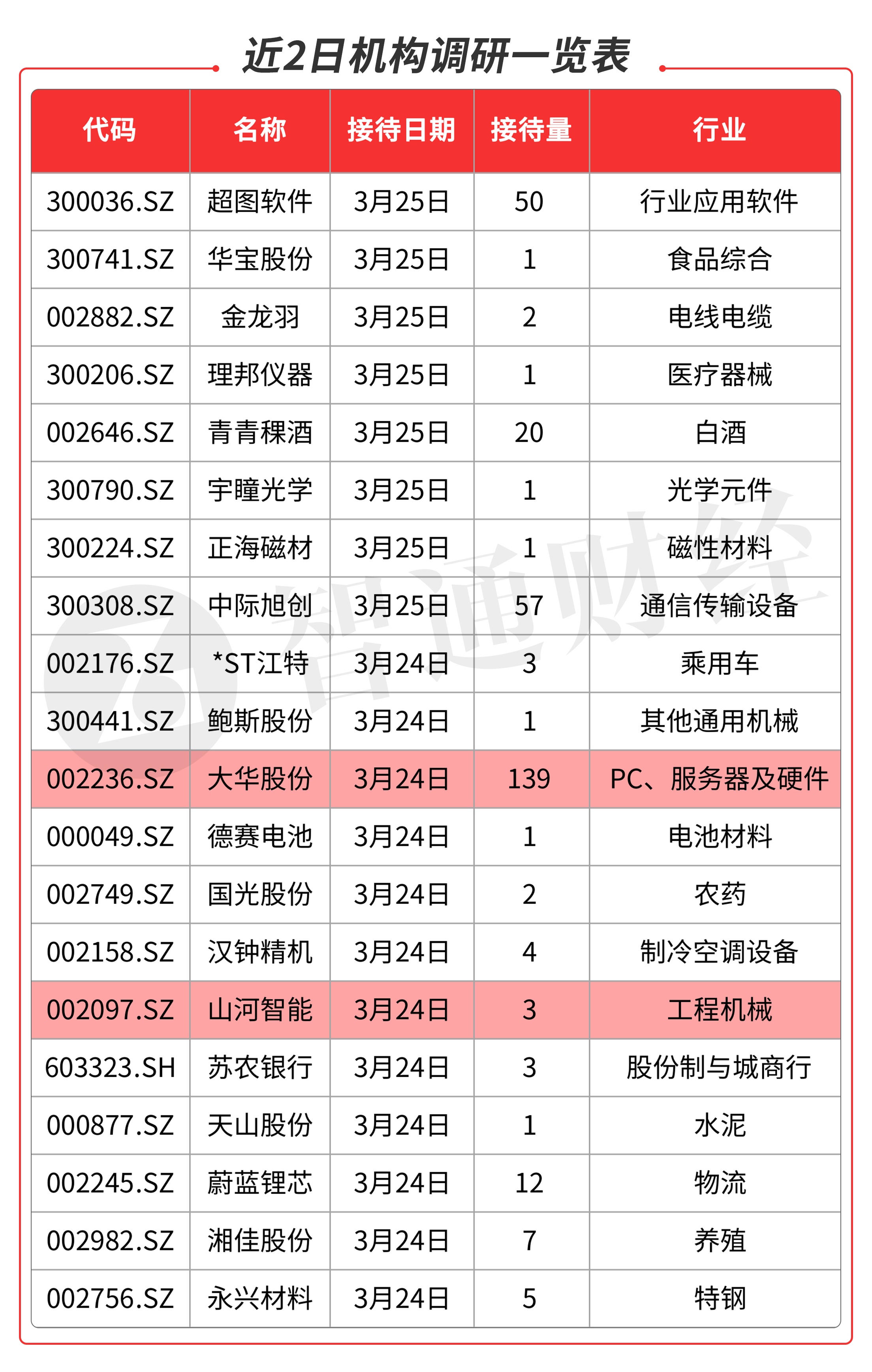 大华股份(002236.SZ)近期获汇添富基金、嘉实基金、招商基金、大成基金等机构密集调研。