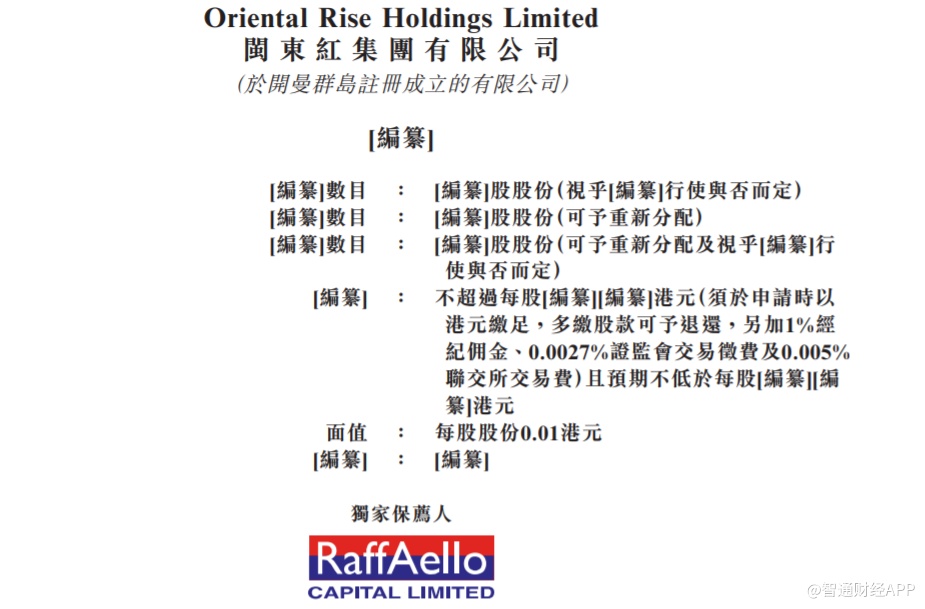 智通财经APP获悉,据港交所3月26日披露,闽东红集团有限公司(Oriental Rise Holdings Limited)向港交所主板递交上市申请,RaffAello Capital Limited担独家保荐人。