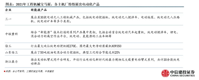 工程机械龙头企业在电动化领域研发实力更强,布局更早,将引领行业进步与变化,重点推荐三一重工、中联重科(01157)、徐工机械。