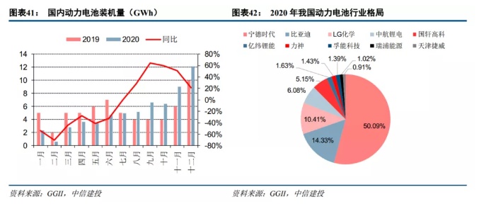 在下游新能源汽车持续快速放量的背景下,动力电池环节也将迎来快速增长。并且随着制作工艺技术的不断进步,电池能量密度以及单车带电量有望不断提升,从而推动动力电池装机量实现更快速的增长。