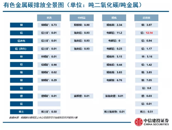 电解铝具有高耗能属性,生产一吨电解铝耗电13500度,中国发电主要为火力发电,对应单吨电解铝产生碳排放量为11.2吨;水电铝项目采用水利发电的清洁能源,可实现“零碳排放”;再生铝由于利用废铝进行冶炼,单吨电解铝碳排放为0.23吨;有色金属工业协会将推动实现以电解铝行业为重点的“碳中和”,严控电解铝产能总量,水电铝和再生铝相关标的有望受益。