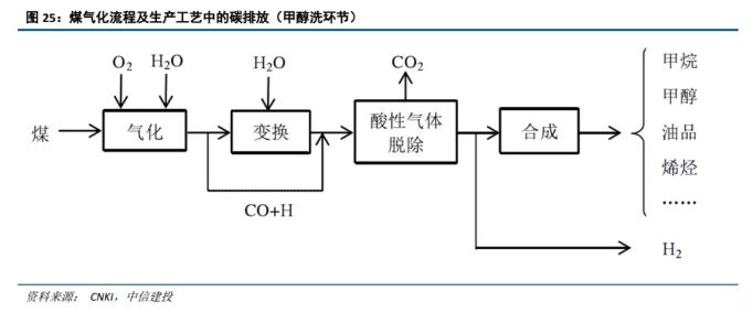 3、优质企业有更好的气化工艺,碳转换率更高、煤炭单耗更低,无形之中都降低碳排放:先进的气流床煤气化工艺,不但对原料煤品质要求更低,碳转换效率也更高。以华鲁恒升为参考,其制造单位合成气消耗煤565kg,远低于固定床工艺690-690kg的消耗。另以宝丰能源为参考,据公开披露资料,公司CTO路线煤醇比1.5、甲醇单耗2.89,这些都提供了潜在的碳排放降低。另外,更加改良的甲醇洗环节工艺也将有效降低煤化工生产工艺中产生的碳排放。