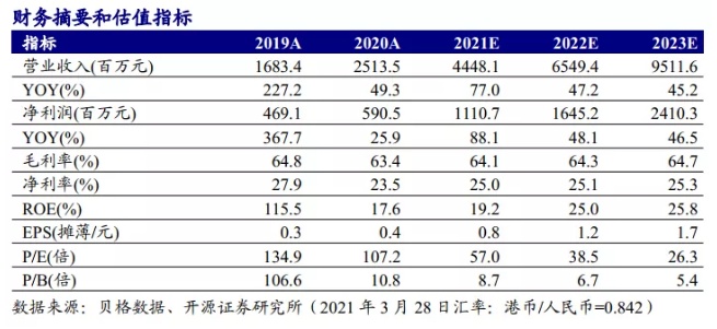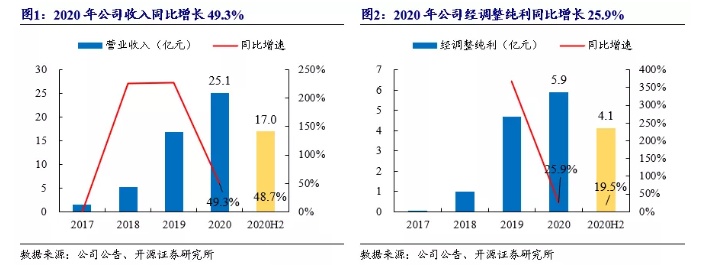 2020年公司实现营收25.1亿元(+49.3%),经调整纯利5.9亿元(+25.9%)。其中2020H2公司实现营收17.0亿元(+48.7%),经调整纯利4.1亿元(+19.5%)。公司收入和净利润继续保持较快增长的趋势。