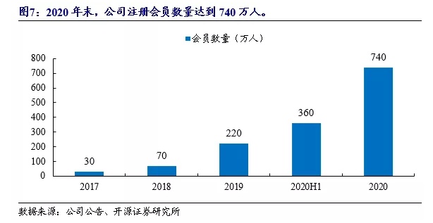 2020年,泡泡玛特注册会员数量大幅上升。2020年,泡泡玛特注册会员数量达到740万人,当期净增加520万人,其中2020H2净增加380万人,注册会员消费占比达到88.8%,公司会员体系不断完善。