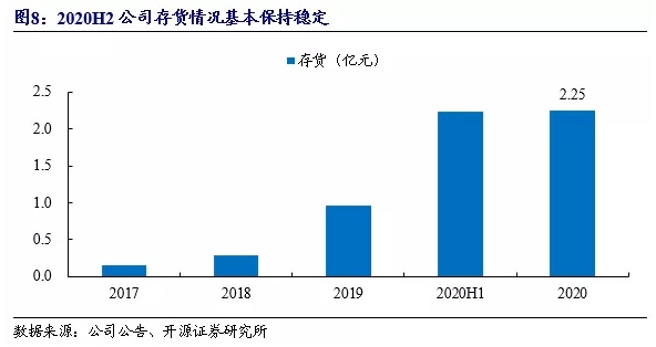 2020年末,公司存货为2.25亿元,同比增加1.29亿元,但环比2020H1期末仅增加0.01亿元。因此, 2020H2公司存货情况基本保持稳定。