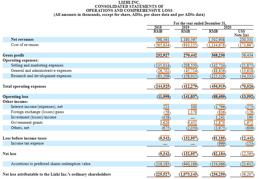 智通财经APP获悉,荔枝(LIZI.US)向美国SEC递交了20F报告,披露了公司截至2020年12月31日的2020年年报和最新股权结构,其中公司2020年净营收为15.03亿元(人民币,下同),同比增长27%。